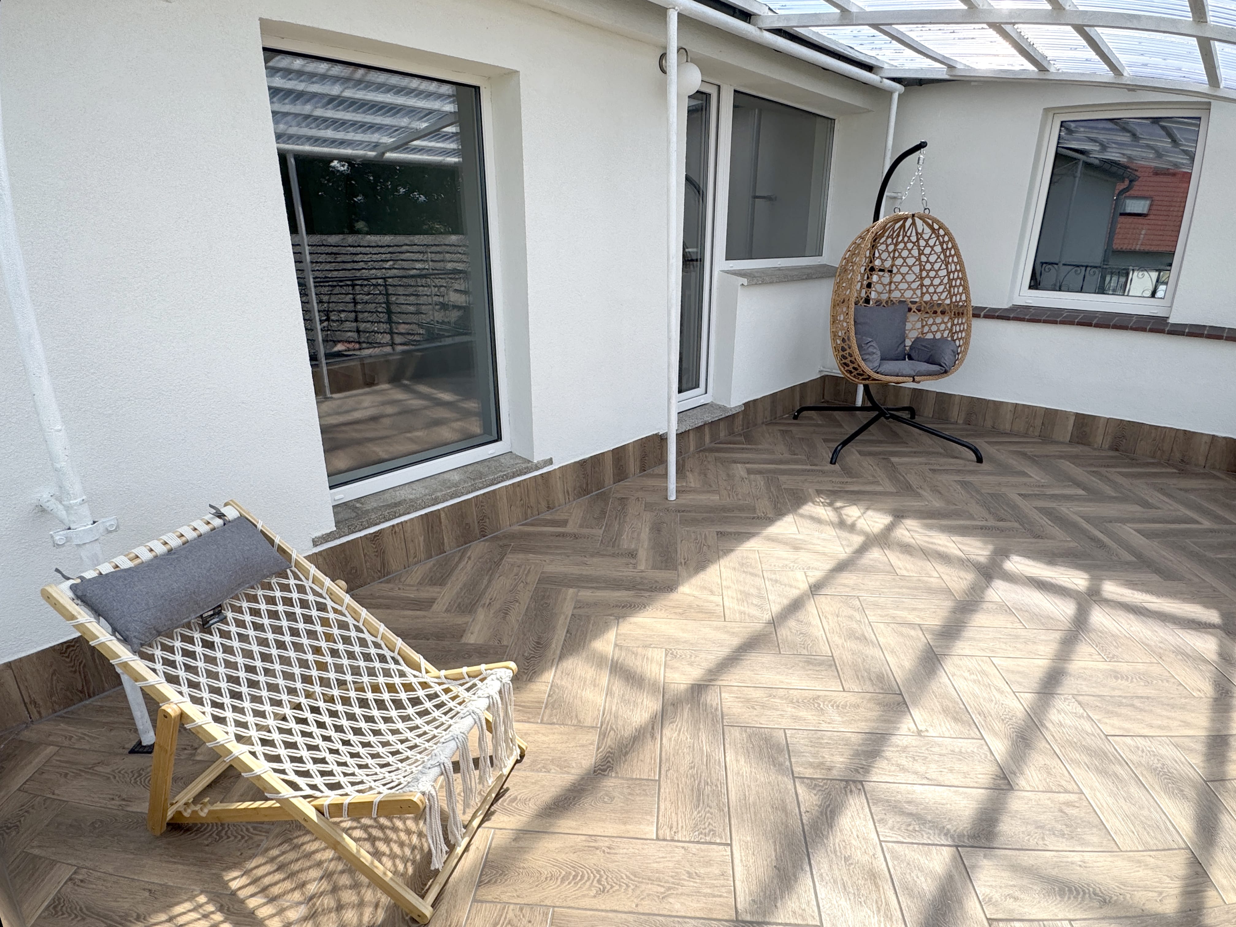 - Zwei Terrassen, gefliester Balkon mit Ausblick